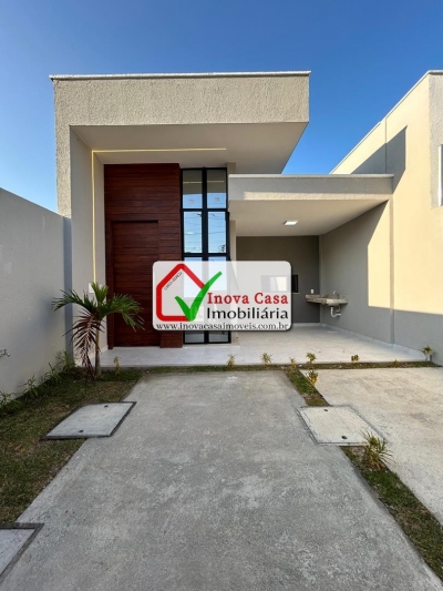 Casa plana com excelente acabamento em terreno de 198m² (6x33) com 115m² de área construída, 3 suítes, sala de estar e jantar, cozinha, varanda gourmet, chuveirão.